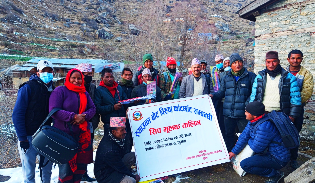 स्याउ खेतीबाट अधिकांश जुम्लीले जीविकोपार्जन गर्दै आएका छन् । स्याउका विरुवा नभएका अहिले कुनै घर नभएको वडाध्यक्ष भण्डारीले बताए । सात दिने तालिमका प्रशिक्षक तथा हिमा गाउँपालिका कृषि शाखा प्रमुख बबरजंग शाहीले उक्त सीप मुलक तालिमको सहजिकरण गरेका थिए । उनले भने, ‘तालिममा सहभागी सबैका घरमा २ सयदेखि २ सय ५० बिरुवा छन् ।’