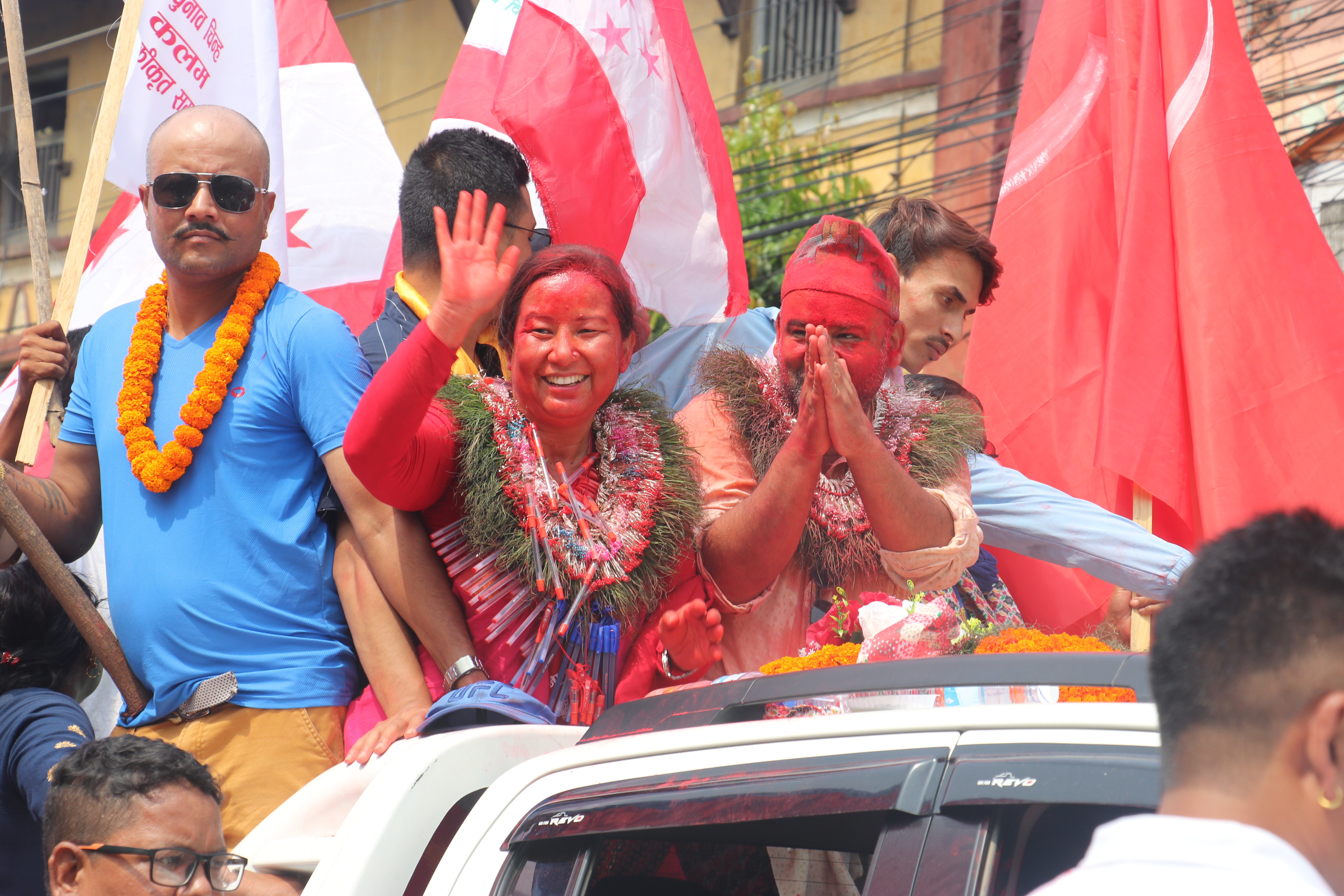 विजयी जुलुसमा निर्वाचित नगरप्रमुख लामा, उपप्रमुख बानियाँसहित कांग्रेस बागमती प्रदेश अध्यक्ष इन्द्रबहादुर बानियाँ, बागमती प्रदेश सामाजिक विकासमन्त्री कुमारी मोक्तान, एकीकृत समाजवादीका केन्द्रीय उपाध्यक्ष मुकुन्द न्यौपाने, बागमती प्रदेश सदस्य मुनु सिग्देल, माओवादी केन्द्रका बागमती प्रदेश उपाध्यक्ष प्रेमबहादुर पुलामी, समाजवादी मकवानपुर इन्चार्ज ललित बस्नेतसहित गठबन्धनका नेता एवं राजनीतिक दलका नेता–कार्यकर्ता, गठबन्धनका निर्वाचित वडाध्यक्ष तथा सदस्यहरूको सहभागिता रहेको थियो । – रमेश लम्साल र अञ्जली थापा रासस, काठमाडौँ ।